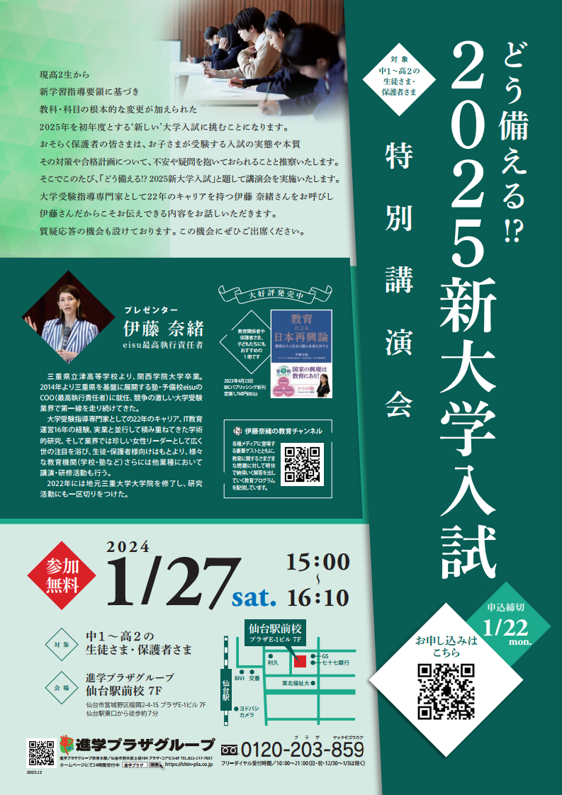 1月27日(土)、東北地方をメインに、関連塾も含めて東日本全域で展開する「進学プラザグループ」様主催の『特別講演会』に、伊藤奈緒がプレゼンターとして講演させていただきました。